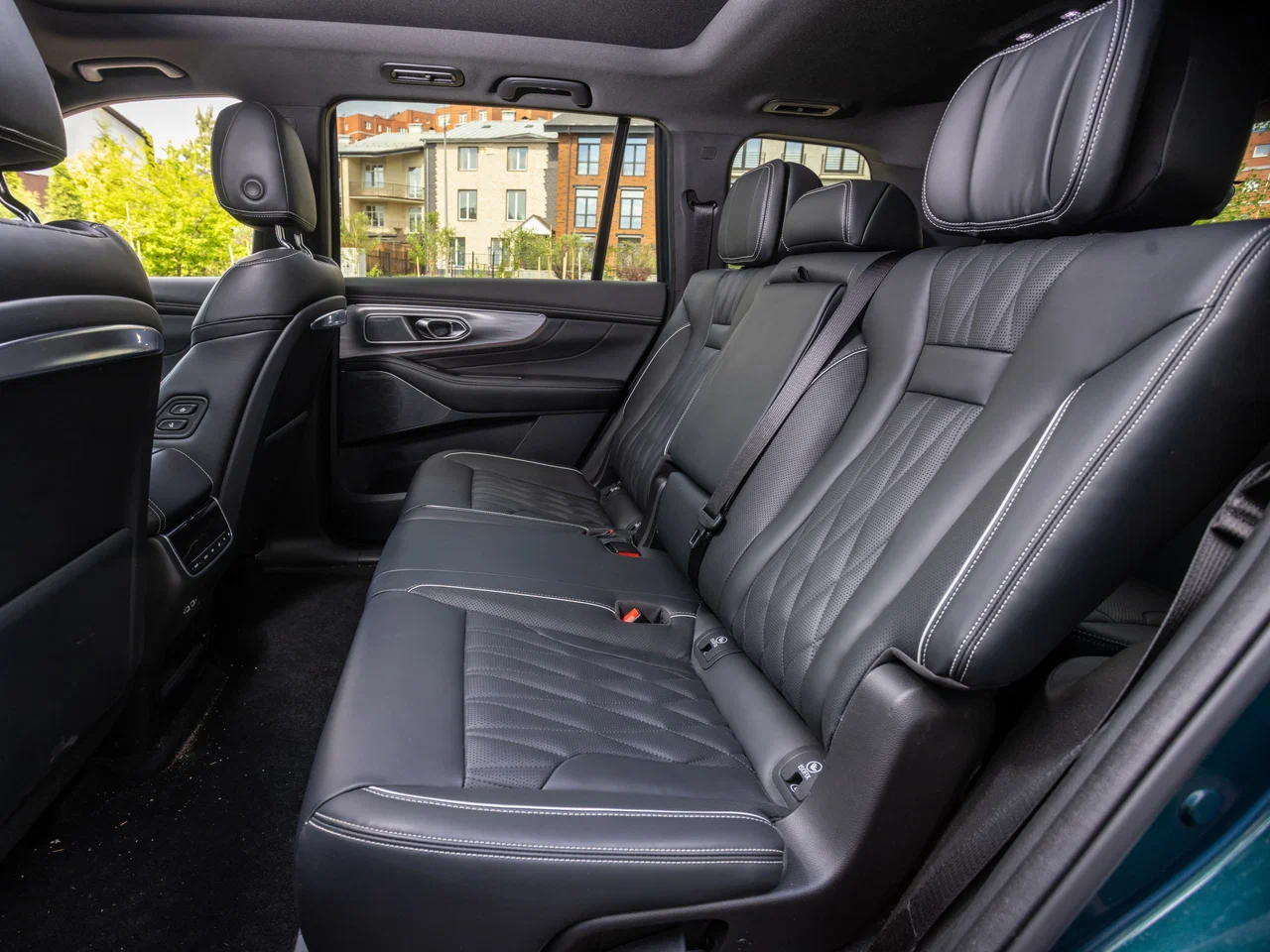 Ремни безопасности левого и правого сидений второго ряда с ограничителями натяжения + трехточечный ремень безопасности центрального сиденья второго ряда